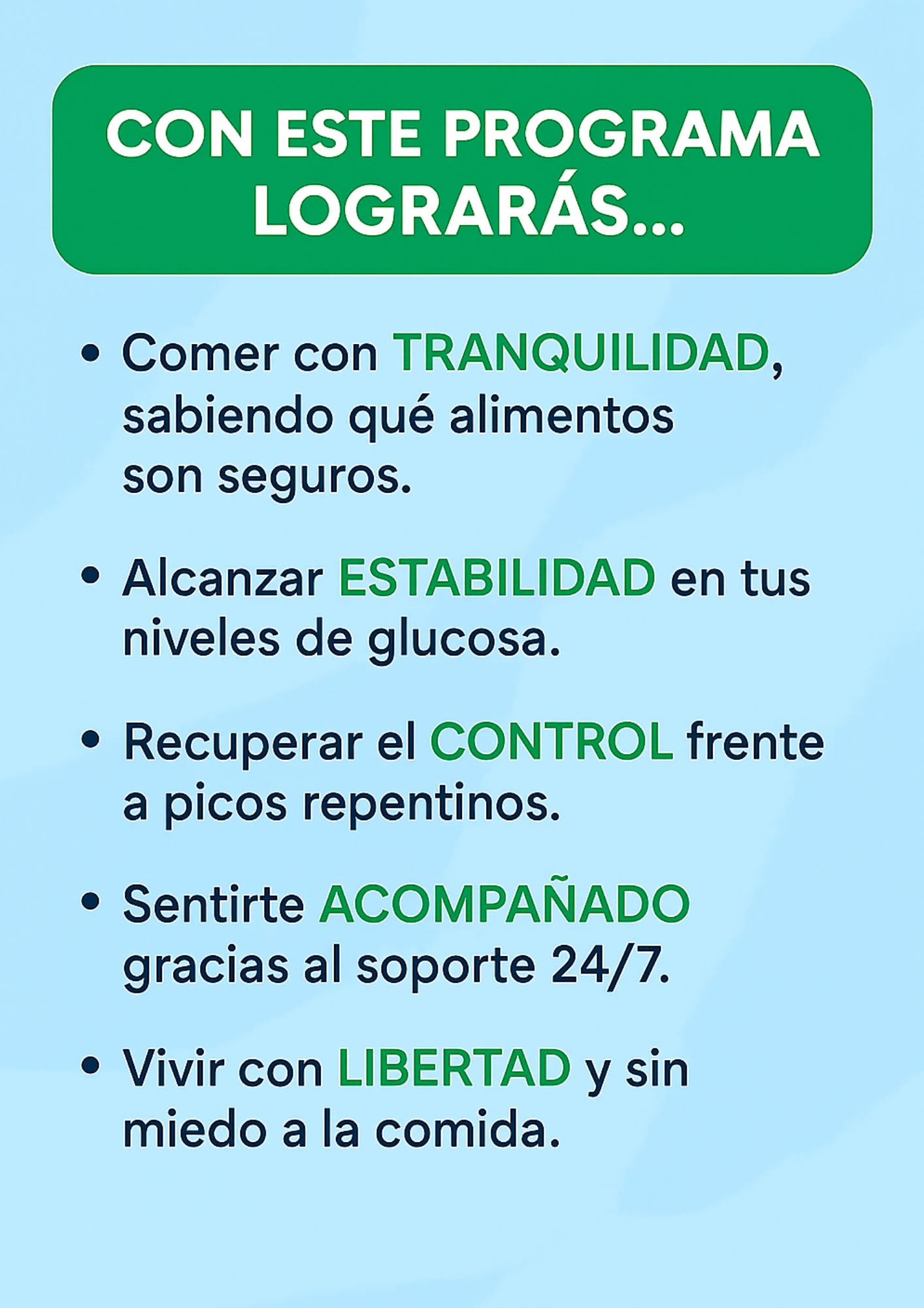 Controla tus picos de glucosa y aprende a manejar tu diabetes en solo 30 días con un método creado por profesionales.